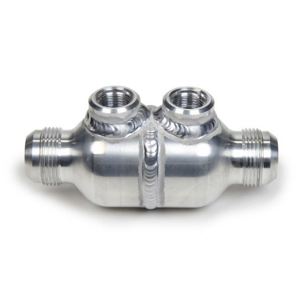 C&R Radiator Check Valve, Flapper, #16 AN Male Inlet, #16 AN Male Outlet, Two #8 AN Female O-Ring Ports, Aluminum, Natural