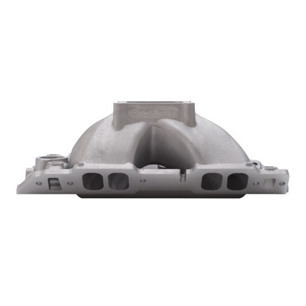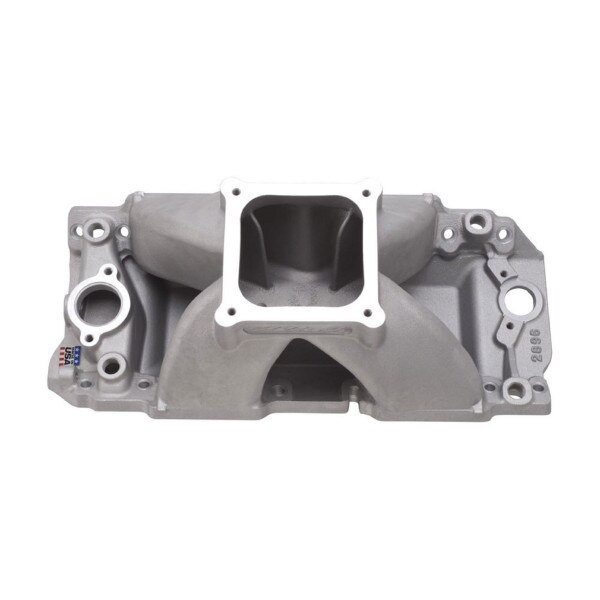 Edelbrock part #2896 Super Victor II is designed for use with large cubic inch big-block Chevy engines using the latest design conventional port heads. These single-plane intake manifolds are ideal for any 1,000+ horsepower drag race engine with high air flow requirements. The Edelbrock Super Victor II #2896 intake manifold features an improved runner design with an incredible 5.0 square-inches of runner area in the plenum. Accepts standard height distributors. This manifold has an extra large carburetor outer flange with a 5" x 5" opening to fit high flow carburetors and throttle stops.