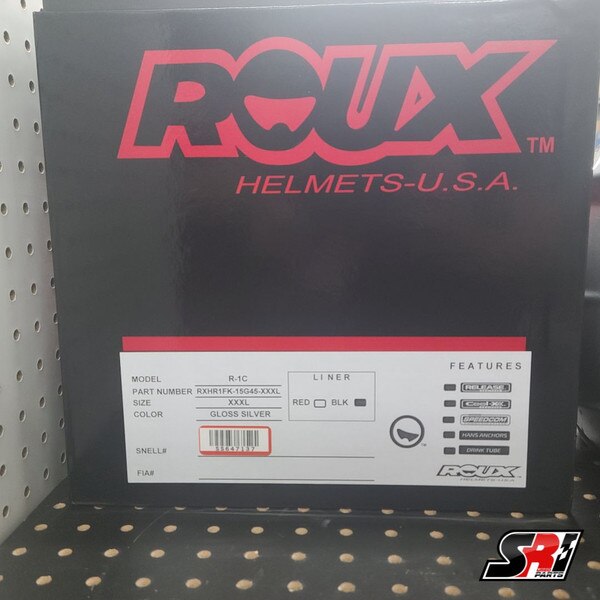 The ROUX R-1C Composite helmet is SNELL 2015 and FIA 8859-rated. It includes an integrated water drink tube with quick disconnect, complete radio gear with noise cancelling microphone and speaker pods, COOL-X integrated water cooling system, HANS anchors, and ROUX’s RELEASE emergency helmet removal system. It also comes with a dark smoke shield, extra shield hardware and three different sizes of cheek pads for custom fitting. Available in silver only.