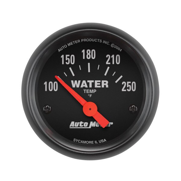 Autometer Gauge, Water Temperature, Z-Series, 100-250°F, Analog, 2-1/16" Diameter, Electric (Black Face/Black Bezel)
