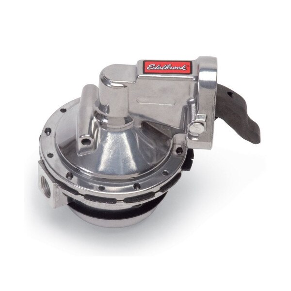 Edelbrock part #1721 Performer RPM Series fuel pump is for Small-Block and "W Series" Chevrolet designed for use with all Edelbrock carburetors used in Performer or Performer RPM applications. These high-performance's street Fuel Pumps feature a high quality three stage polished finish. The unique valve design improves flow quantity and quality, and will support engines up to 600 hp. High-volume, 3/8" NPT inlet and outlet surpasses the capacity of conventional models. Produces 6 psi and does not require a regulator. Use with gasoline only. Clockable lower housing can be rotated in 60 Deg Increments for best inlet/outlet alignment.