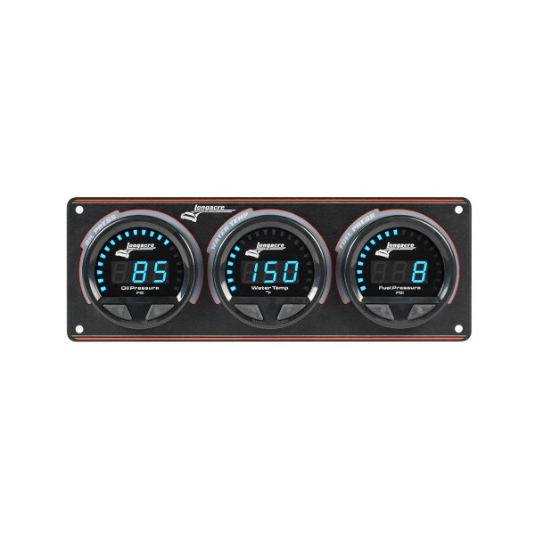 The next generation in instrumentation has arrived. Longacre Racing products is proud to introduce the all-new Digital Elite Waterproof Gauges. Engineered for wet and dirty environments, the Digital Elite Waterproof Gauges provide the absolute best in waterproof sealing. These elite gauges provide the most precise measurements on the market with unmatched resistance to vibration, heat, and moisture. Manufactured with IP-66 certified methods to be waterproof; dust tight and safe against powerful water jets. Uses Firewall Mount 52-43541. • New waterproof design eliminates the need to remove gauges before you wash your car. • LED digital numbers and illuminated dial lights. • Dimmable feature included to increase visibility for daytime racing and reduce glare during nighttime racing. • Custom set your warning settings. • Panels are completely wired and ready for quick installation. • Many panel combinations available to suit your specific racing needs. • All sensors are included. • New 2-5/8” digital gauges include Water Pressure, Fuel Pressure, Oil Pressure, Water Temperature, Voltage, and Tachometer with high rpm, average low rpm, and average high rpm.